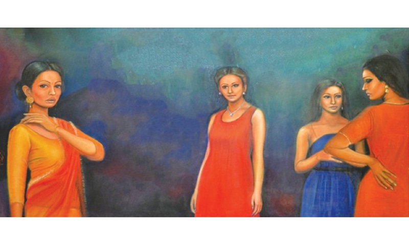 The two-person exhibition “Dedicated to you” by Sumera Jawad and Zarmeena Aslam at Ejaz Art Galleries, Lahore displayed the aura of female imagery through a series of animated frames. Figures, drenched and wrapped in curves and shapes, painted on the coarse surface of the canvas, created an atmosphere acknowledging the centuries old, divine and delightful doctrine that has always been associated with women.