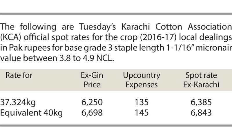 The Karachi Cotton Association cut its spot rates by Rs50, to Rs6,250 per maund (around 37kg).