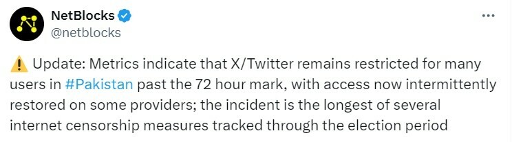Internet tracking monitor NetBlocks has said that the recent disruption of social media platform X in the country, now past the 72-hour mark, is the “longest of several internet censorship measures tracked” through the election period.
