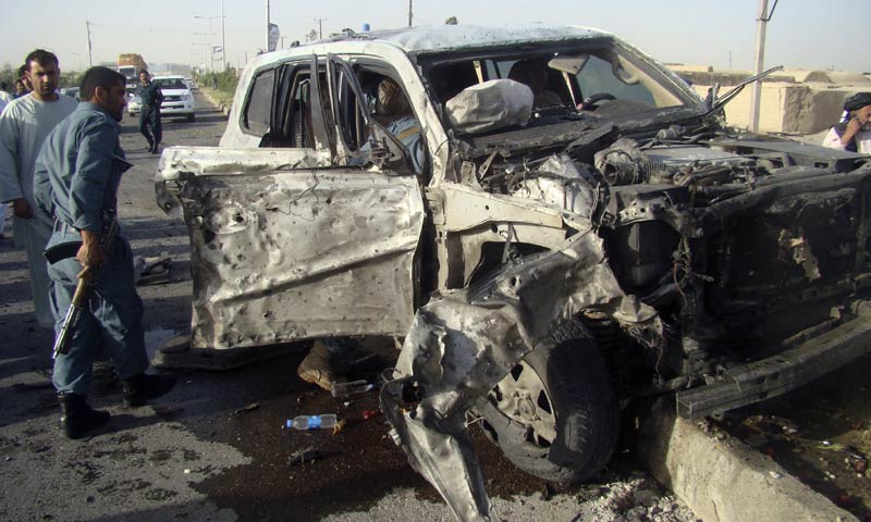 Helmand provincial Police Chief Mohammad Nabi Elham sustained only minor injuries when the car bomber struck as he was on his way to his office at about 7 am.