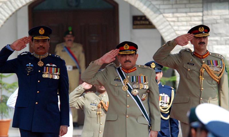 At a special ceremony held here at Joint Staff Headquarters and attended by all services chiefs and senior officers, a smartly turned out joint services guard presented salute as to the outgoing chairman.