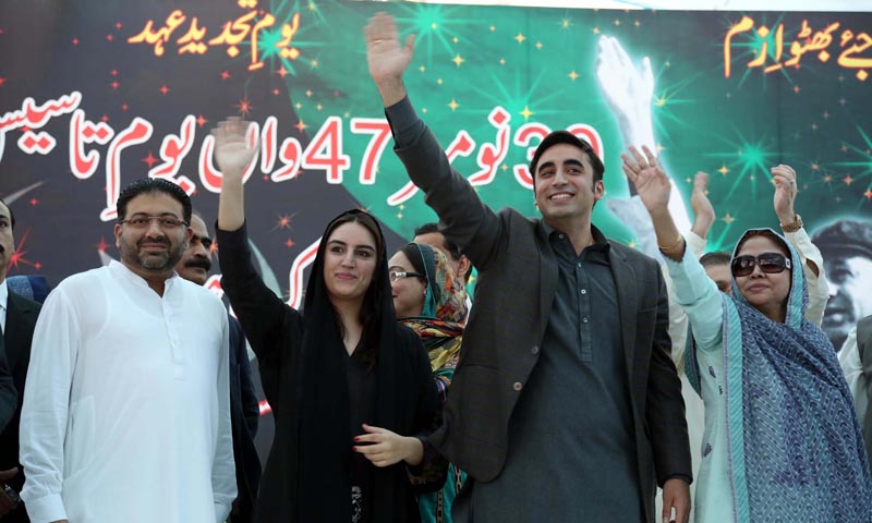 Mr Bilawal’s sister Bakhtawar was present on the stage, flanked by aunt Faryal Talpur and Syed Owais Muzaffar, who has lately resigned from the Sindh cabinet.