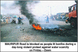 KARACHI, June 13: Protesters, demanding restoration of water supply to certain areas of Lyari, turned violent when law enforcement agencies lobbed teargas shells and resorted to baton-charge to disperse them. The hide-and-seek between the protesters and LEAs on Mauripur Road continued intermittently throughout the day which disrupted vehicular traffic.