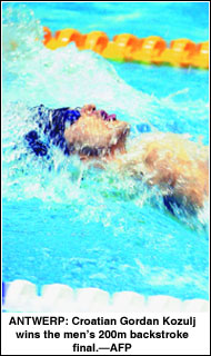 The men’s 400 metres freestyle was won by Emiliano Brembilla of Italy in 3:41.27, while Croatia’s Gordan Kozulj won the men’s 200 backstroke in 1:53.37.—Reuters