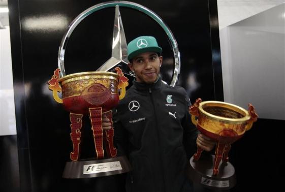German team mate Nico Rosberg took the chequered flag 18 seconds behind the Briton to finish runner-up for the third race in a row but retaining the overall lead in the championship, four points ahead of Hamilton.
