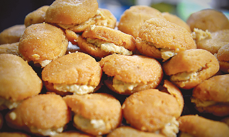 It may look like some kind of chum chum, but Mohammad Ishtiaq at Dacca Sweets in Gulshan-i-Iqbal says it is something quite different. “Kutcha Gulla, which is more flavour and less sweet. But if you are looking for chum chum, we have something similar but with sweet cream stuffing in the centre. It is called malai karri or malai chum chum though some also call it ‘malai burger’,” he says.