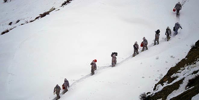 They flew to a strategic military post in Siachen, located at Bilafond-la, at a height of about 17,000 feet, not far from where the Indian army is based at the Line of Actual Contact.