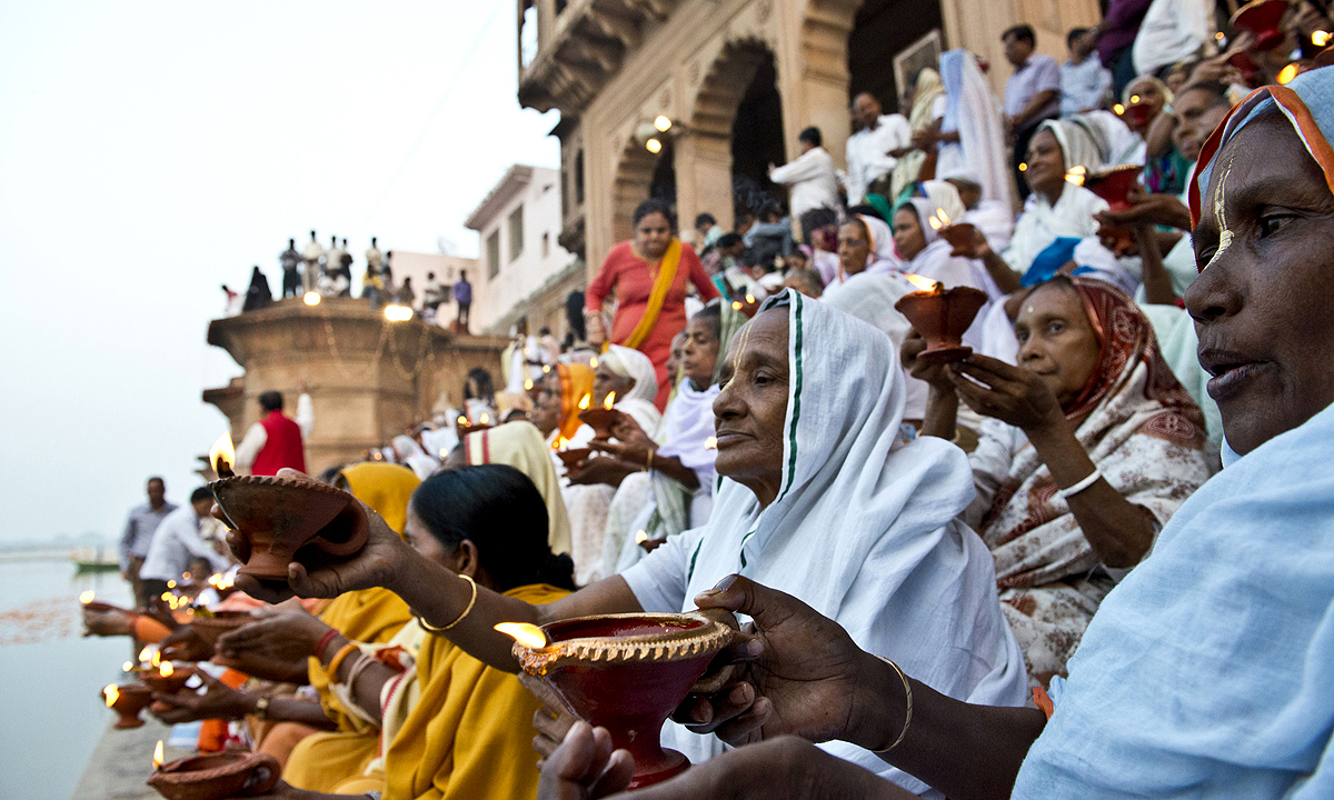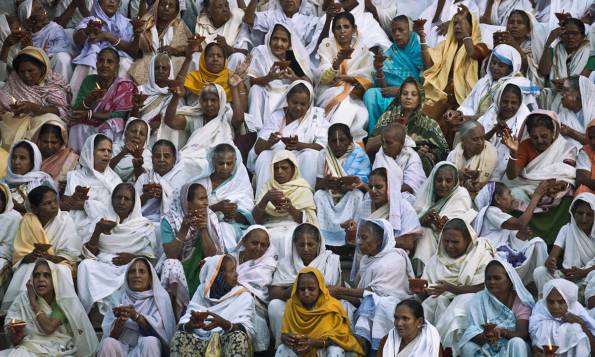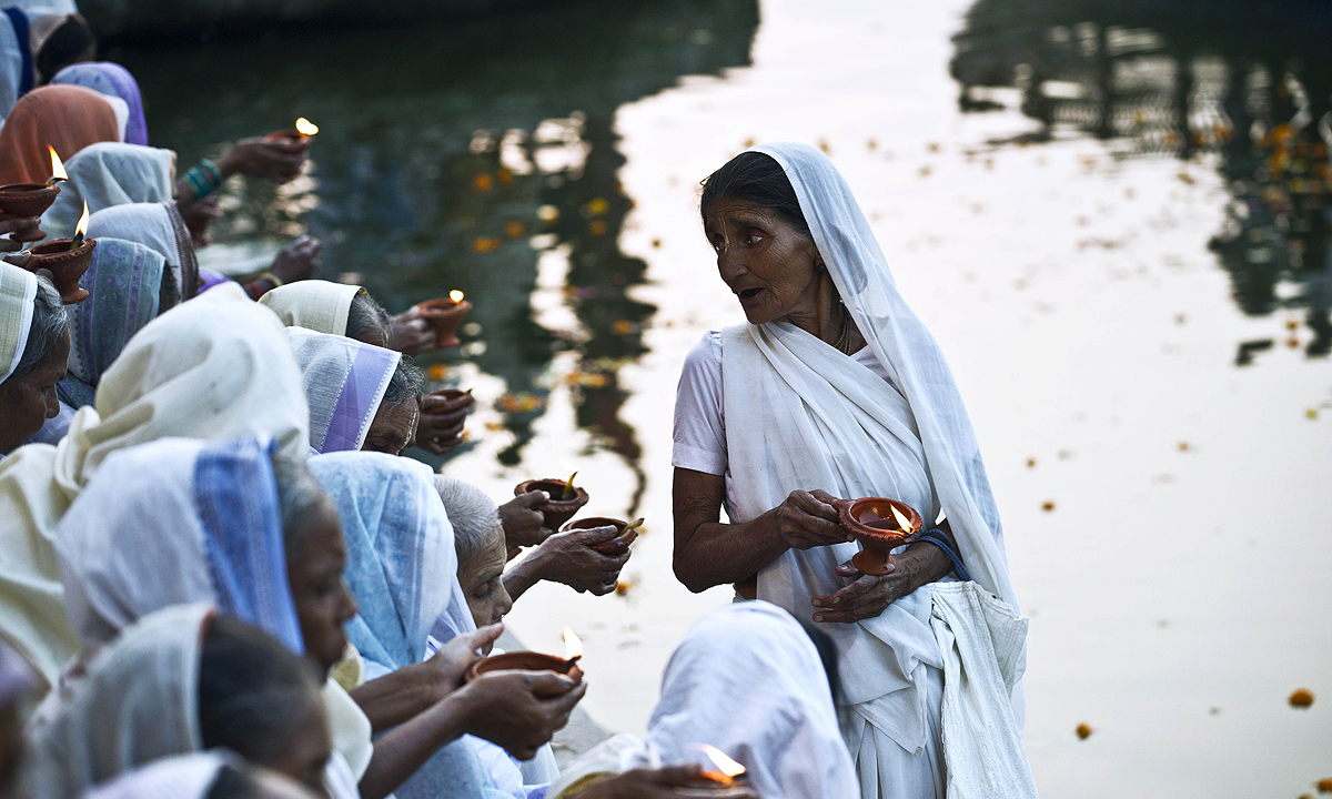As the early autumn sun begins to set on the Yamuna river, hundreds of Indian women swathed in white and carrying traditional earthenware lamps file through winding streets to the edge of the holy waters. The women, chanting as they walk through the streets of Vrindavan to mark the Hindu festival of Diwali, are widows who have left their families or have been abandoned by them. Until recently, they were kept hidden from society and virtually forbidden to celebrate. But that is now changing. Local residents cheered the women on as they passed through the streets of the temple-filled town, many proudly wearing brand-new saris donated by a local organisation. Later they lit their lamps and offered prayers on the riverbank before heading back to their ashram to celebrate, some dancing late into the night. “These lights, crackers and dancing reminded me of happier times with my family,” said 60-year-old Meena Pradhan, who came to the town after the deaths of her husband, son and a daughter 10 years ago. The celebrations were held on Tuesday and were organised by Sulabh International, a group that has been helping the thousands of widows who flock to Vrindavan in the north Indian state of Uttar Pradesh. Bindeshwar Pathak of Sulabh International said the women should continue to defy the tradition that widows should not celebrate Diwali and other festivals.