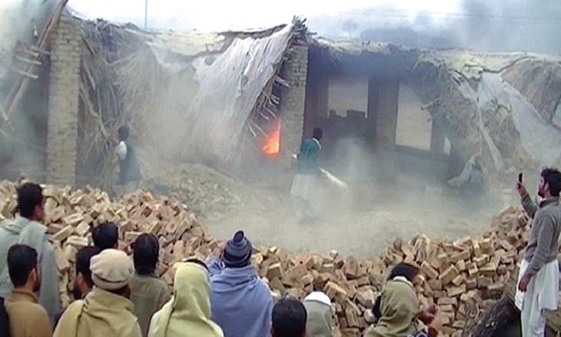 CHARSADDA: Enraged people demolished a religious seminary and adjacent fishing hut built on a graveyard here after a man was killed when the madressah administrator and his men opened fire on the protesters on Wednesday.
