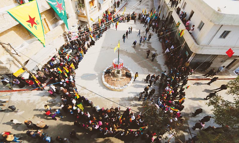The news prompted celebrations among residents who fled across the frontier into Turkey, with thousands gathering at the border and hoping to return, more than four months after the fighting began.