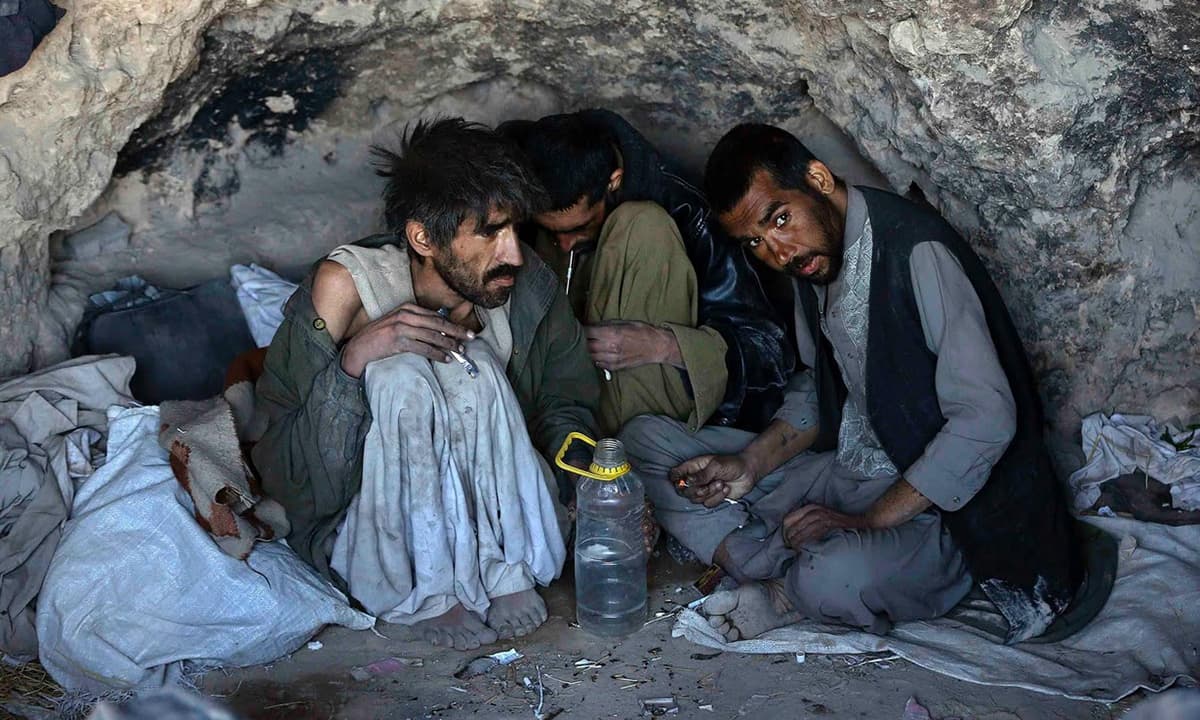 In the ruins of Farah's ancient citadel, addicts huddle in the cold, smoking opium.