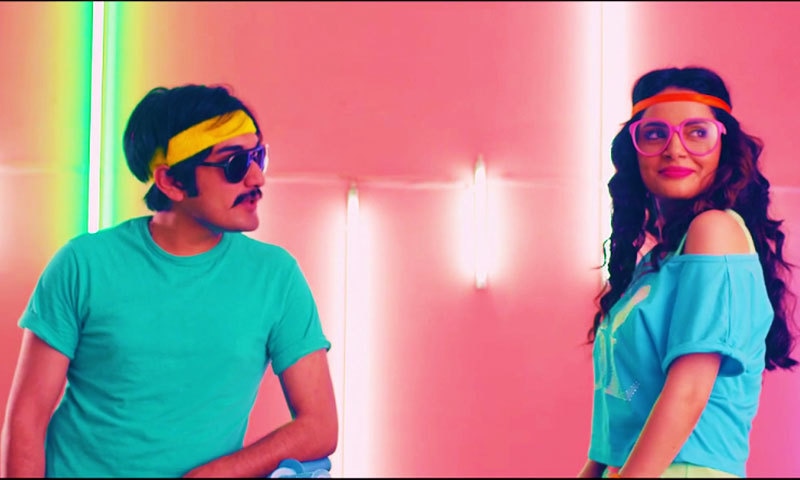 The spotlight nevertheless i on Armeena who looks completely different from how she appears in Pakistani dramas and her desi avatar in Bin Roye. She wears a funky top and headgear and has curled her long hair for a retro look.