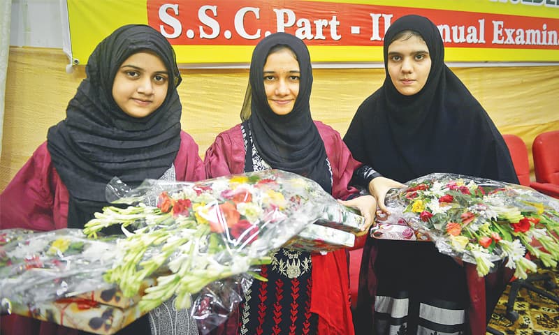Aqsa Zubai of Al-Badar Higher Secondary School, who stood first in the general group (760 marks), shared her ambitions of going into fashion designing. Hareem Siddiqui (757 marks) and Hafiza Kainat Malik (742 marks), who in the same group stood second and third, respectively, belong to Iqra Haffaz Girls Secondary School.