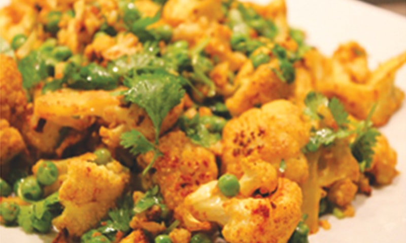 In another pan, boil potatoes, cauliflower and peas. Add the boiled vegetables into the gravy.