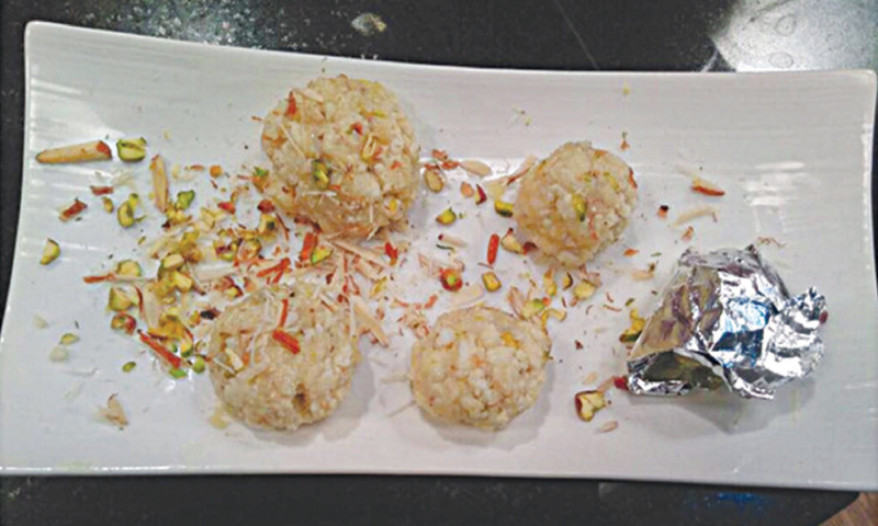 Chop almond and pistachios and keep aside. Break cottage cheese into little pieces and add sugar to it. Heat the mixture in a pan, on low heat. Add kewra water, most of the chopped almonds and pistachios and mix well. Leave some nuts aside for garnishing. After three to four minutes add khoya in it, the mixture will start to thicken. Turn off the flame and pour mixture onto a plate. Let it cool. Make balls, garnish with more almonds and pistachio and serve.