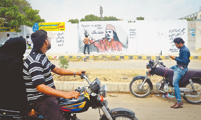 KARACHI: With the Amjad Sabri image on a portion of the boundary wall of Memon Technical & Industrial Institute (MITI) in Korangi 5 going viral, the people behind it started work on Abdul Sattar Edhi’s portrait on Tuesday.
