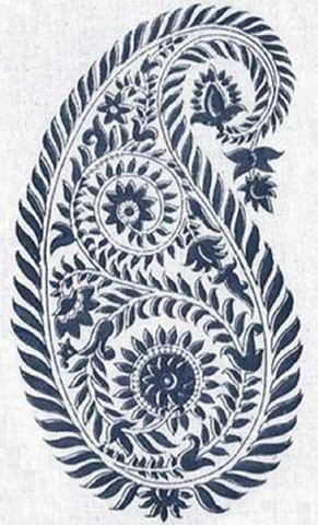 Often composed of three concentric compartments, the central area sometimes contains three flowerettes and the paisley — in this form, it probably symbolised the power of the ancient trinity. It is further embellished with leaves and flowers which further accentuate its life force and is also contended to symbolise wings representing the Soul Bird which protects life and fights the evil eye. The paisley later became very popular particularly in Kashmiri textiles and is a dominant pattern in the famous pashmina shawls. Its Western name derives from the town of Paisley, in West Scotland, a centre for textiles where paisley designs were produced.
