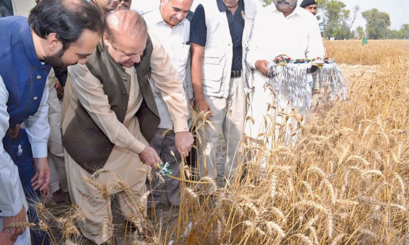 Before his arrival in Okara, the prime minister visited the farm house of Pakistan Muslim League-N MNA Sayed Ashiq Kirmani in Shergarh and inaugurated wheat crop harvesting.