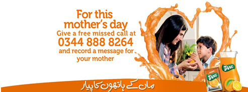 This Mother's day, tell your mom how much you really love her by surprising her with a special message from you, courtesy Tang Pakistan. To send a free recorded message to your mom, just give a missed call on 0344 888 8264. You will receive a call where you can record your message and give your mother's number. This message will then be sent to your mother on Mother’s Day.