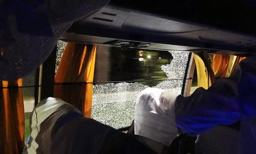 Players and staff were travelling from Barsapara Stadium back to their team hotel in the eastern city when the rock pierced the window on the right-hand side of the bus, CA said on its website.