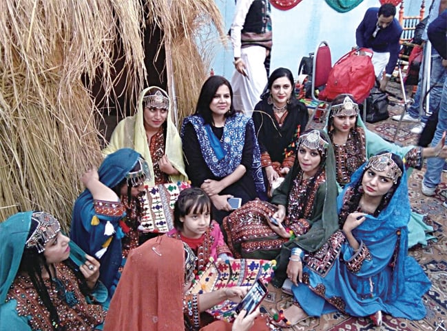 Girls from Thal desert area attired in intricately embroidered colourful dresses presented their cultural dance to a folk song amid applause from the audience.