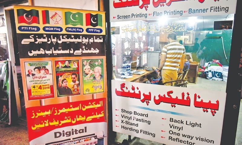 One of our reporters was out and about in Pakistan's largest city today to find out what's brewing in the printing market in the lead up to the elections and it turns out that the printers are making good business thanks to a higher demand from political parties this time around than in 2013.