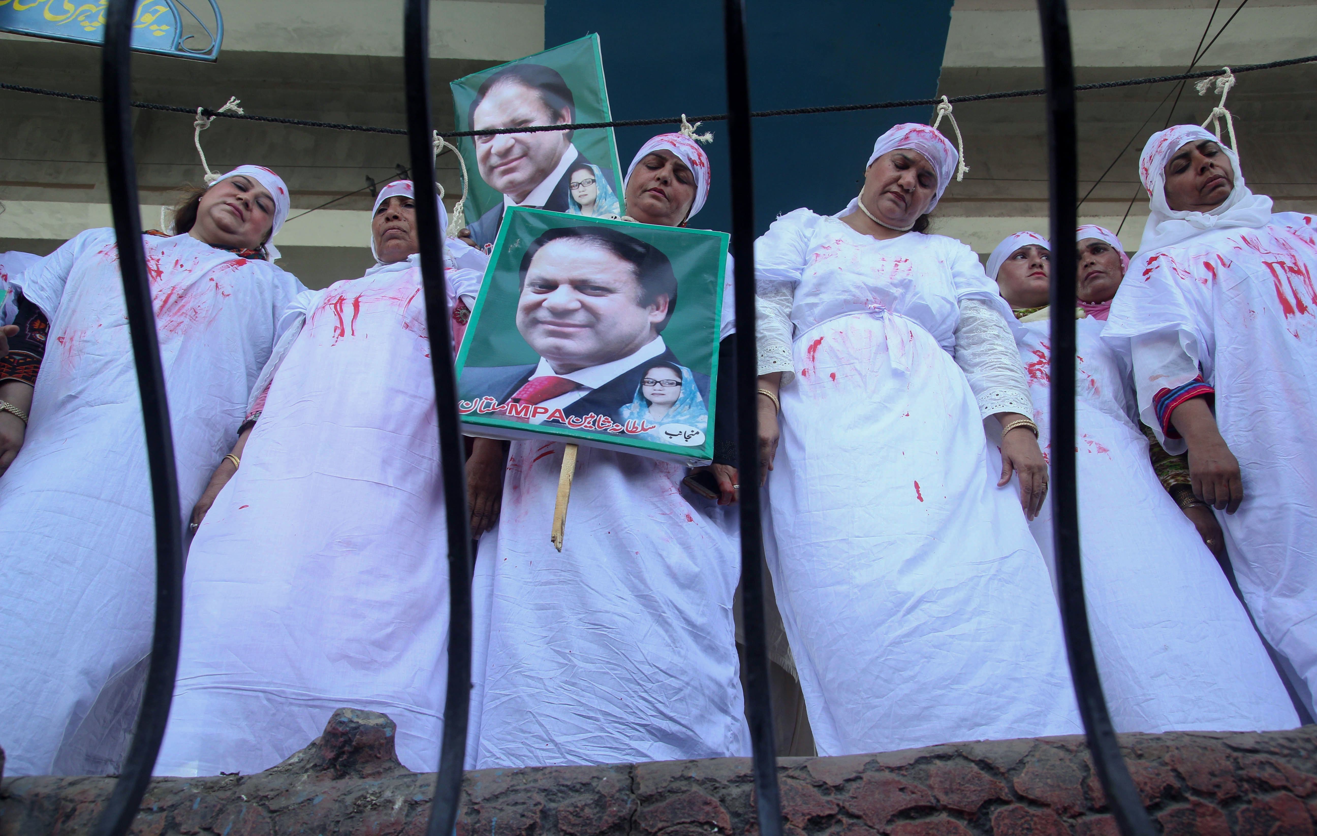 This truly disturbing photo taken by AFP in Multan shows PML-N activists wearing mock nooses around their necks to protest the court's decision against former prime minister Nawaz Sharif.