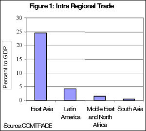 Intra regional trade: Weak trade integration in South Asia is attributed to variety of factors enlisted as follows. The border and non- trade barriers such as custom procedures and under developed port systems have put a dampening effect.