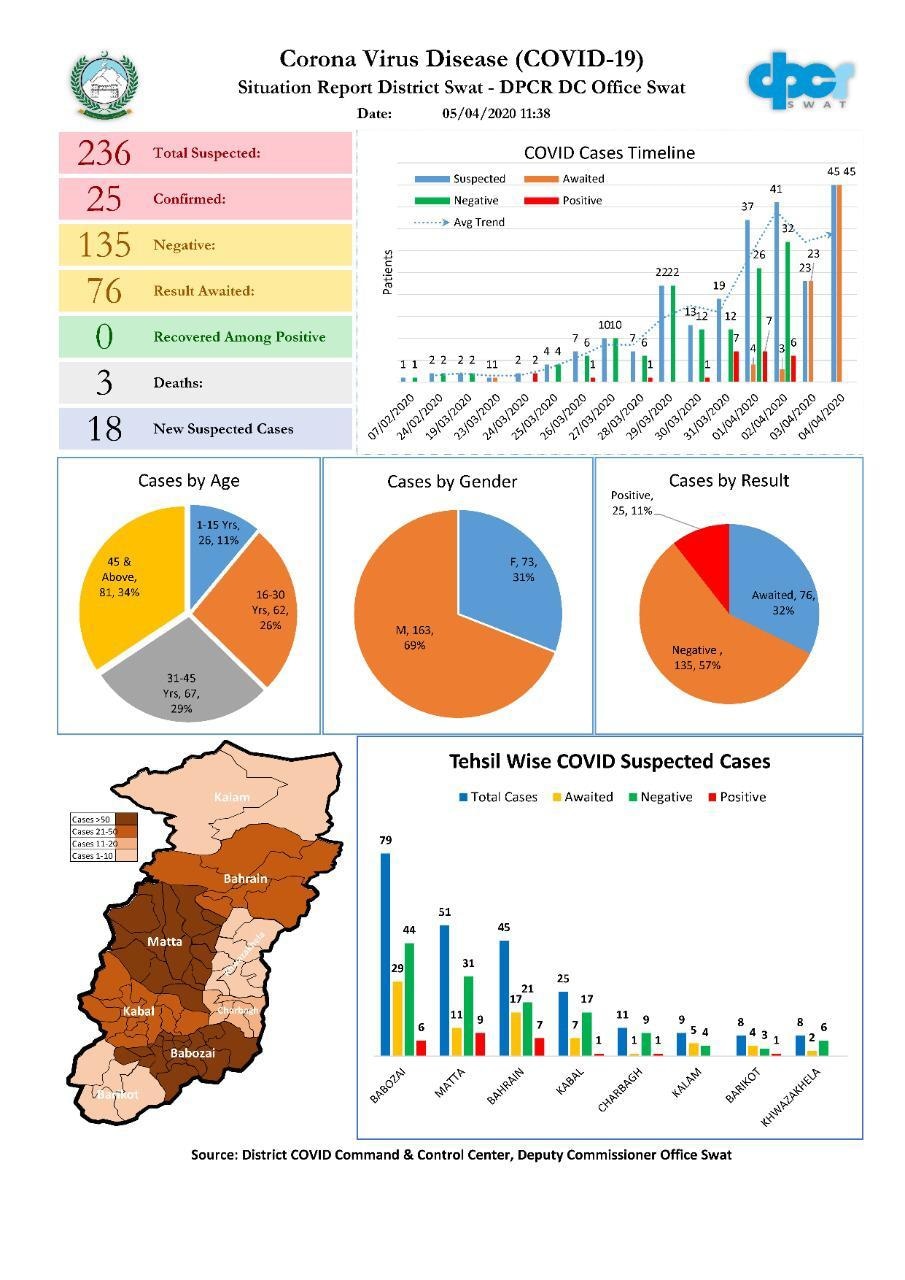 Almost 70 per cent of Covid-19 patients in Swat are male, according to a report from the Deputy Commissioner's Office.