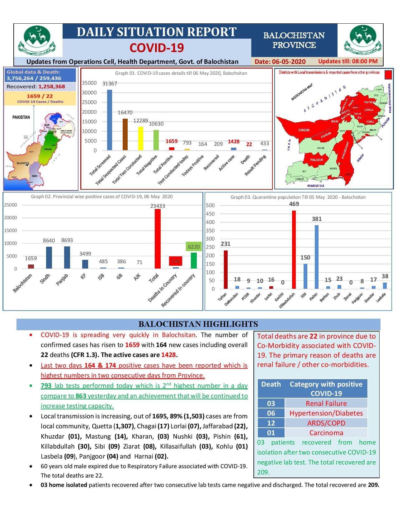 Balochistan has reported one more death from the novel coronavirus, bringing the death toll to 22 in the province.