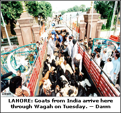 WAGAH, Sept 6: A consignment of Indian livestock crossed the border into Pakistan Tuesday in what was described as the first-ever such export shipment, after Islamabad abolished a tax amid warming ties.