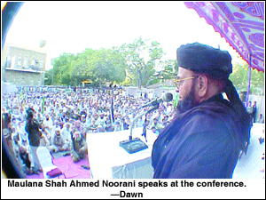 Presided over by its chief Allama Shah Ahmad Noorani, the conference rejected the electoral reforms announced by President Gen Pervez Musharraf and accused him of changing, under US pressure, his stance that there was a clear distinction between Jihad in Kashmir and terrorism.