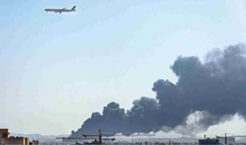 The situation is dangerous as oil worth millions of gallons is stored at those facilities. This air route must be avoided at all costs to save human and material loss. The PIA aircraft seen in the accompanying photograph was flying somewhere over a conflict-hit zone at less than 1,500-metre altitude while plumes of black smoke could be seen at the same location.