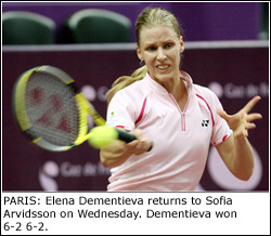In other matches, Vera Dushevina of Russia beat Ivana Lisjak of Croatia 7-6 (4), 6-0 to set up a second-round encounter with Australian Open champion Amelie Mauresmo, who had a first-round bye; Tsvetana Pironkova of Bulgaria advanced 6-2, 2-6, 6-0 over Lucie Safarova of the Czech Republic; and Spain’s Anabel Medina Garrigues outlasted Italy’s Tathiana Garbin of Italy 6-3, 1-6, 7-5 and will play second-seeded Mary Pierce.