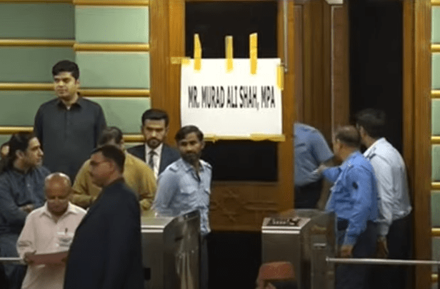 The session is being presided over by newly elected Speaker Owais Qadir Shah. The MPAs are casting their votes by walking through the right side of the aisle for PPP’s Murad Ali Shah and the left for MQM-P’s Ali Khurshidi.