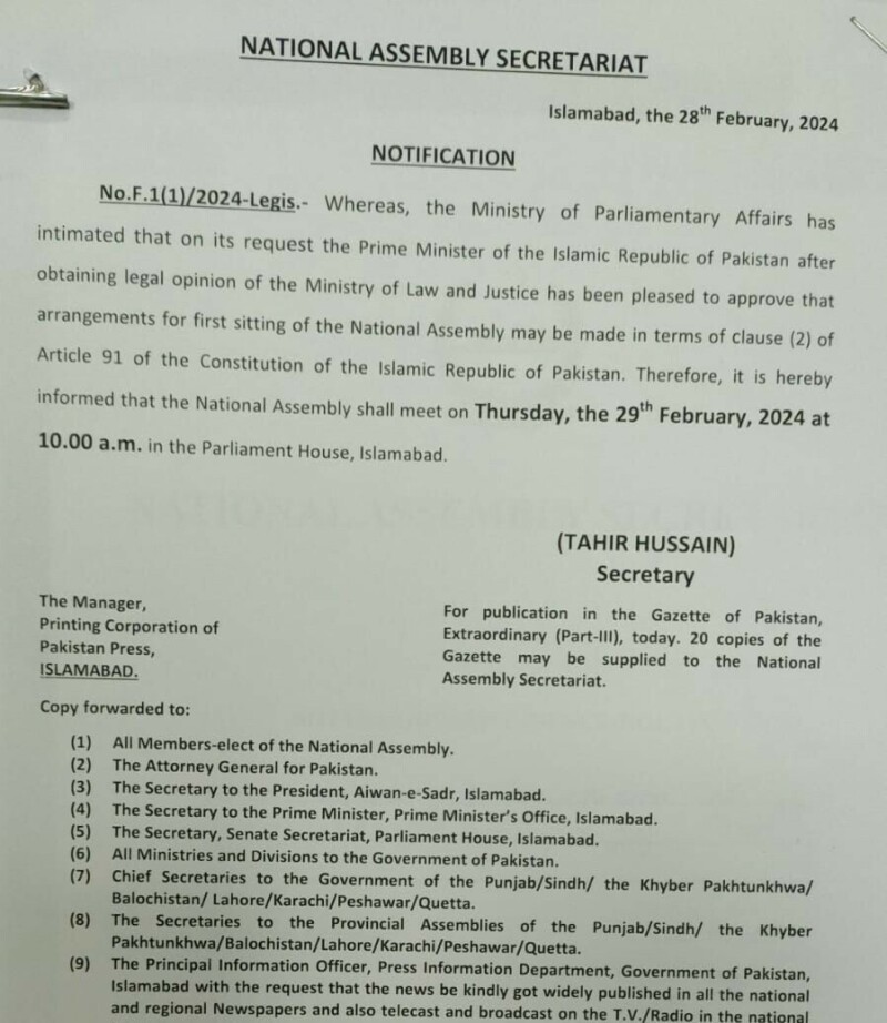 The National Assembly Secretariat says the inaugural session of the lower house of the Parliament will meet at 10am tomorrow.