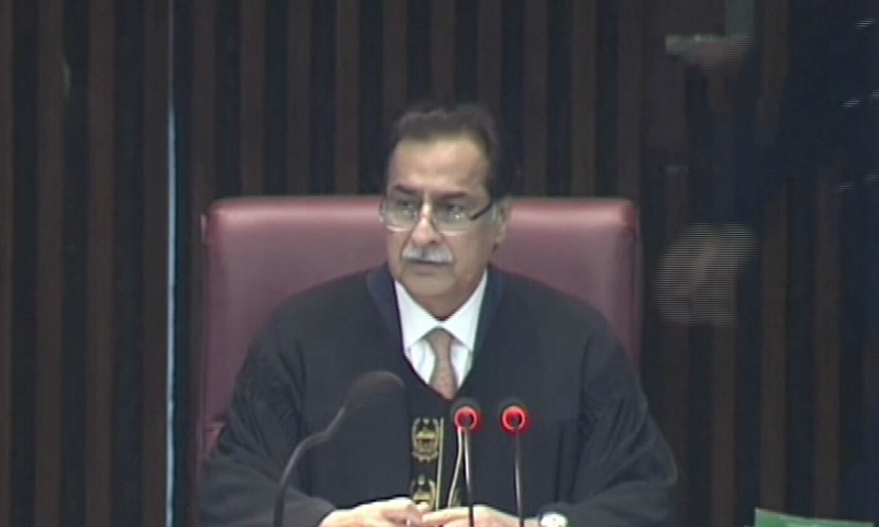 National Assembly Speaker Ayaz Sadiq is reading out the procedure for the election of the prime minister as provided by the NA rules.