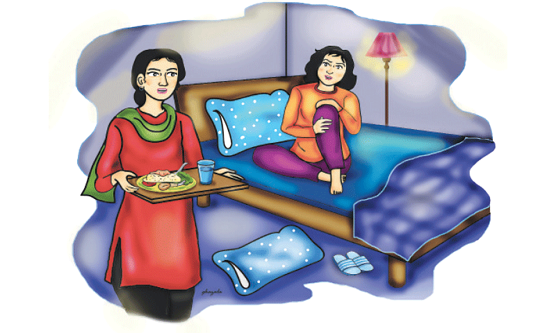 “Can I come?” Zara’s mother knocked on the door and entered. She kept a tray with a plate of delicious food and a glass of water.