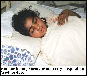 Nur Jehan was shot in the stomach, leg, knee and arm in Gadap and left for dead by her cousins, who accused her of having sex with a young man.