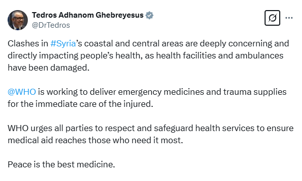 The head of the World Health Organisation, Tedros Adhanom Ghebreyesus, said medical facilities had been damaged in the clashes and that the UN agency was “working to deliver medicines and trauma supplies”.