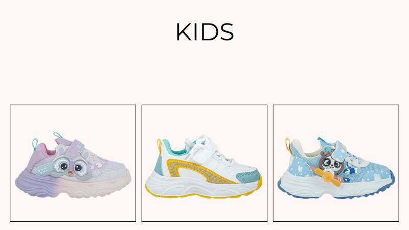 Kids’ shoes: Insignia’s Kids’ Collection features a delightful range of footwear for boys and girls, including formal pumps, comfortable moccasins, stylish sneakers, versatile loafers, and breathable canvas shoes. Each pair is designed with attention to detail, ensuring both style and durability to keep up with active little feet. Perfect for Eid celebrations and everyday adventures alike.