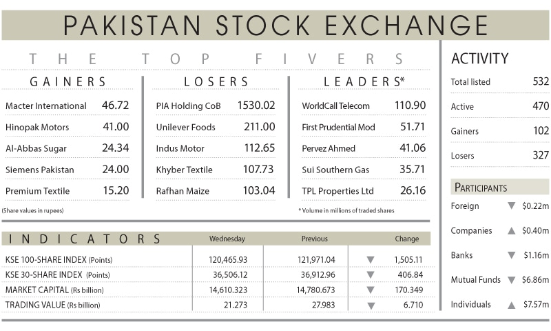 According to brokerage Topline Securities, the Pakistan Stock Exchange (PSX) experienced a lacklustre trading session, reflecting the nervous sentiment prevailing across global markets. The benchmark KSE-100 index plunged by as much as 1,553 points during intraday trade before paring some losses to close at 120,465.93, marking a loss of 1,505.11 points or 1.23pc day-on-day.