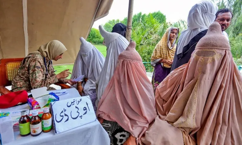 Header image: A doctor checks a woman at a makeshift hospital in the Rajanpur district of Punjab. — AFP