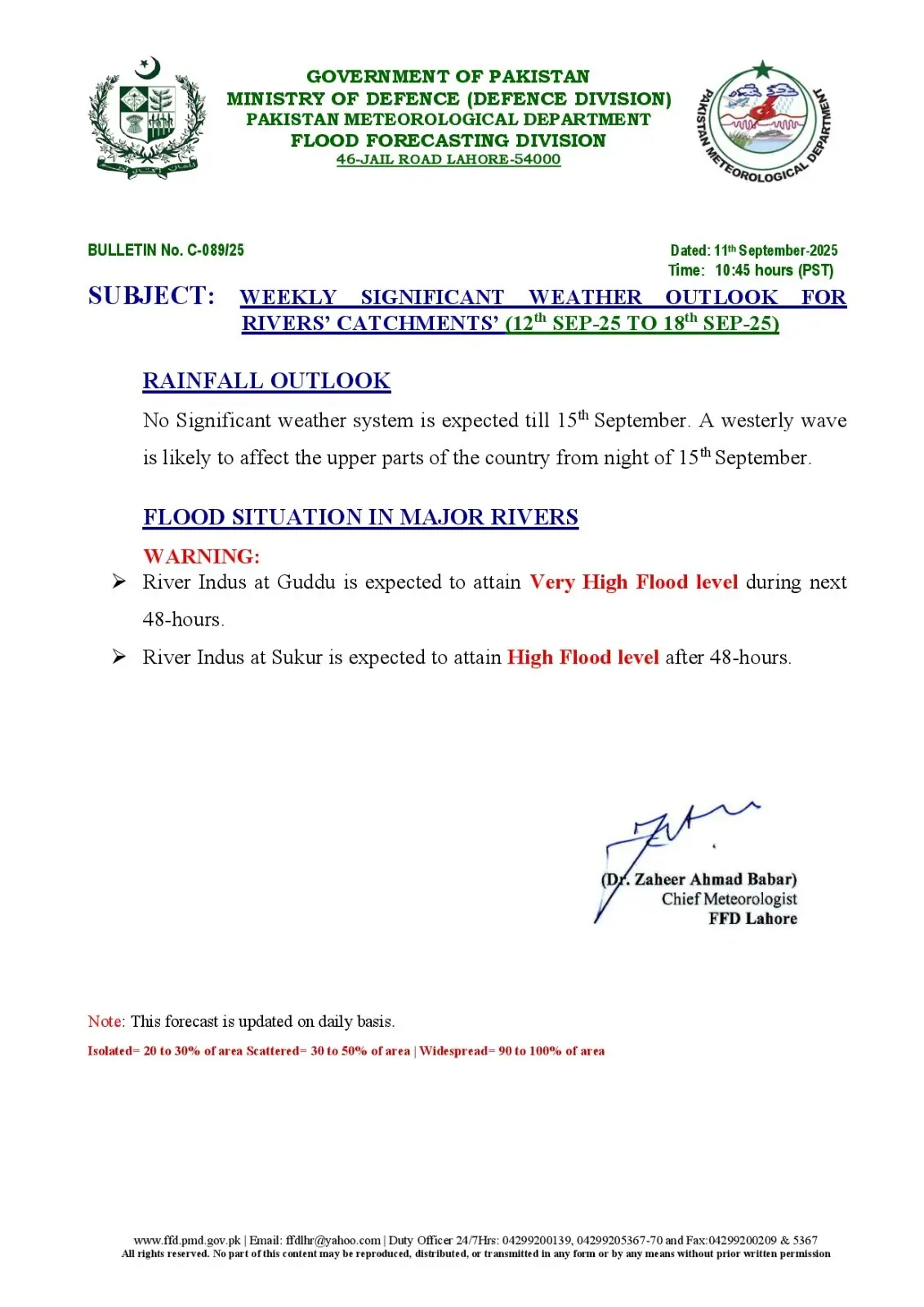 Guddu Barrage is expected to be in a “very high” flood in the next 48 hours, while the Sukkur Barrage will attain “high” flood level within the same time frame, according to an advisory issued by PMD.