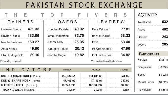 KARACHI: The Pakistan Stock Exchange (PSX) rebounded strongly on Monday, with the benchmark KSE-100 index gaining 945 points, or 0.61 per cent, to close at 155,384.51. The rally came after the State Bank of Pakistan (SBP) maintained the policy rate at 11 per cent, in line with market expectations.