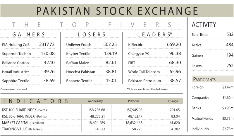 Ali Najib, Deputy Head of Trading at Arif Habib Ltd, noted that the market spent most of the day consolidating within the 158,000­-159,000 point range. After a slow start and a brief dip into negative territory due to profit-taking, value hunters stepped in to push the market into positive territory by the close.