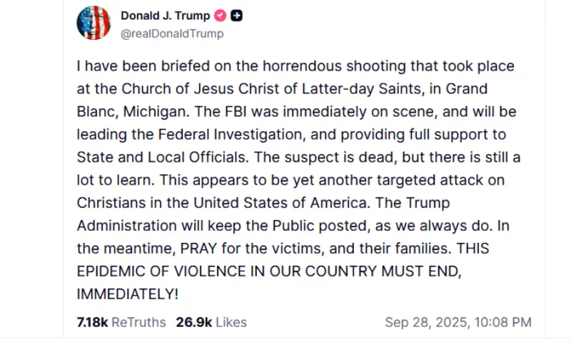 President Donald Trump called the shooting “horrendous” and said on his Truth Social platform it “appears to be yet another targeted attack on Christians in the United States of America”.