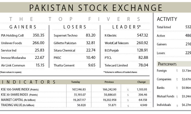 KARACHI: A combination of easing geopolitical tensions and expectations of a status quo in the State Bank of Pakistan’s policy rate spurred fresh investments in the equity market, driving the KSE 100 index to surpass the 168,000-point mark in intraday trade on Tuesday.