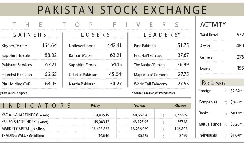 KARACHI: Following initial volatility, the Pakistan Stock Exchange (PSX) extended its overnight bull run as the banks, oil and gas, and cement sectors attracted renewed investor interest in the weekend session, pushing the benchmark index above 162,000 points before settling slightly below this level towards the close.