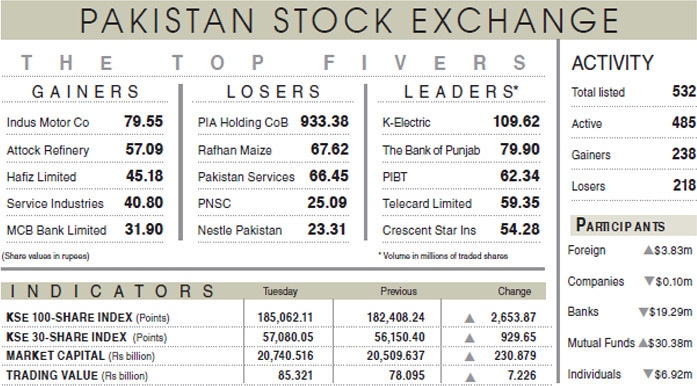 KARACHI: The record-setting spree entered its fourth straight session on Tuesday as the Pakistan Stock Exchange (PSX) maintained its bullish spell, crossing yet another milestone of 185,000 despite volatility early in the session.